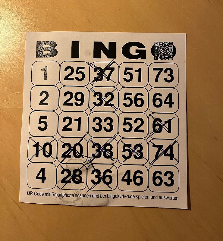 Fabian Pahl hatte als erstes das Glück, 5 Zahlen in einer Reihe abkreuzen zu können.